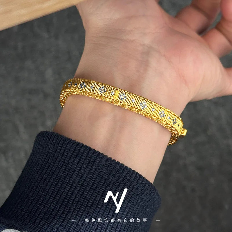 Experience enduring luxury with the Certificate AU999 Real Gold Four Leaf Clover Cuff Bracelet, a vintage-inspired, genuinely gold piece that elevates your moments with lasting shine, versatile styling, and timeless confidence.