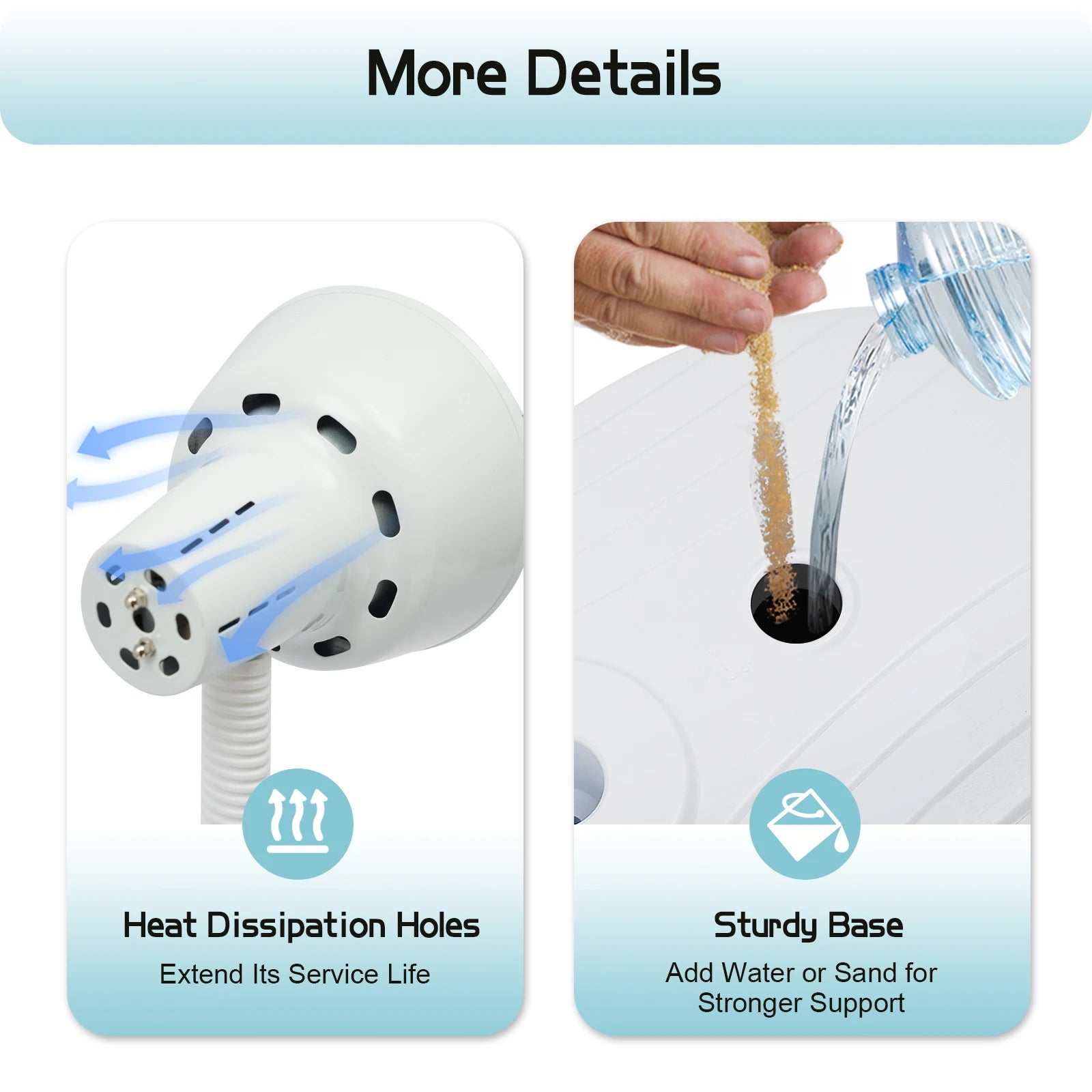 - Durable ABS and stainless steel construction, a stable base you can fill with sand or water for added stability, and easy mobility with wheels.