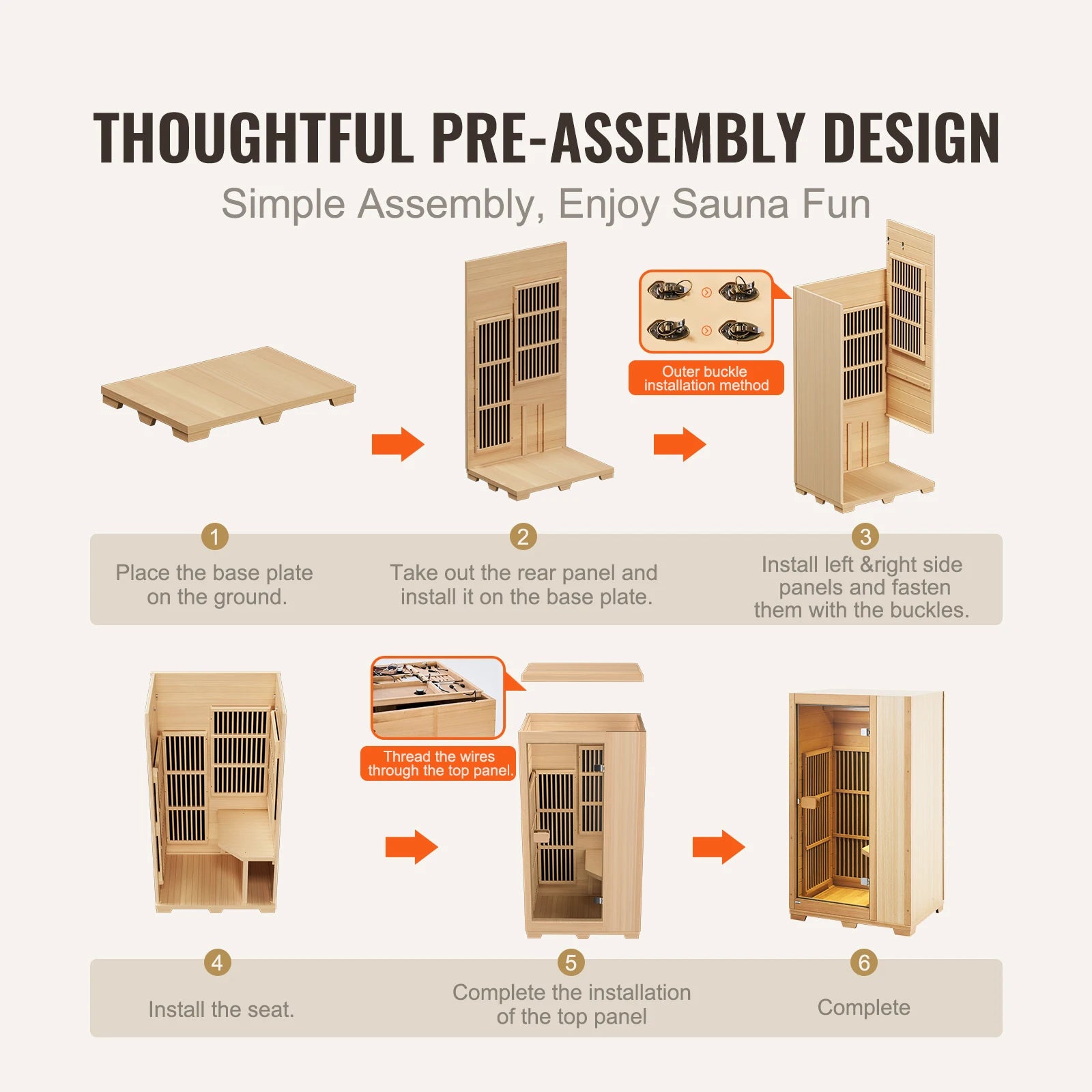- Durable 6mm Canadian hemlock panels deliver natural warmth and a premium, space-saving 7.3 sq ft sauna that suits living rooms, bedrooms, or gyms.